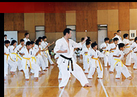 Schüler lernt die Karatetechniken sauber und exakt durchzuführen. Dies ist die